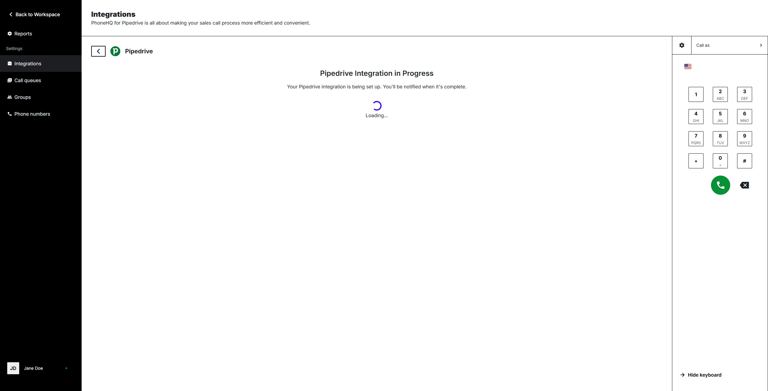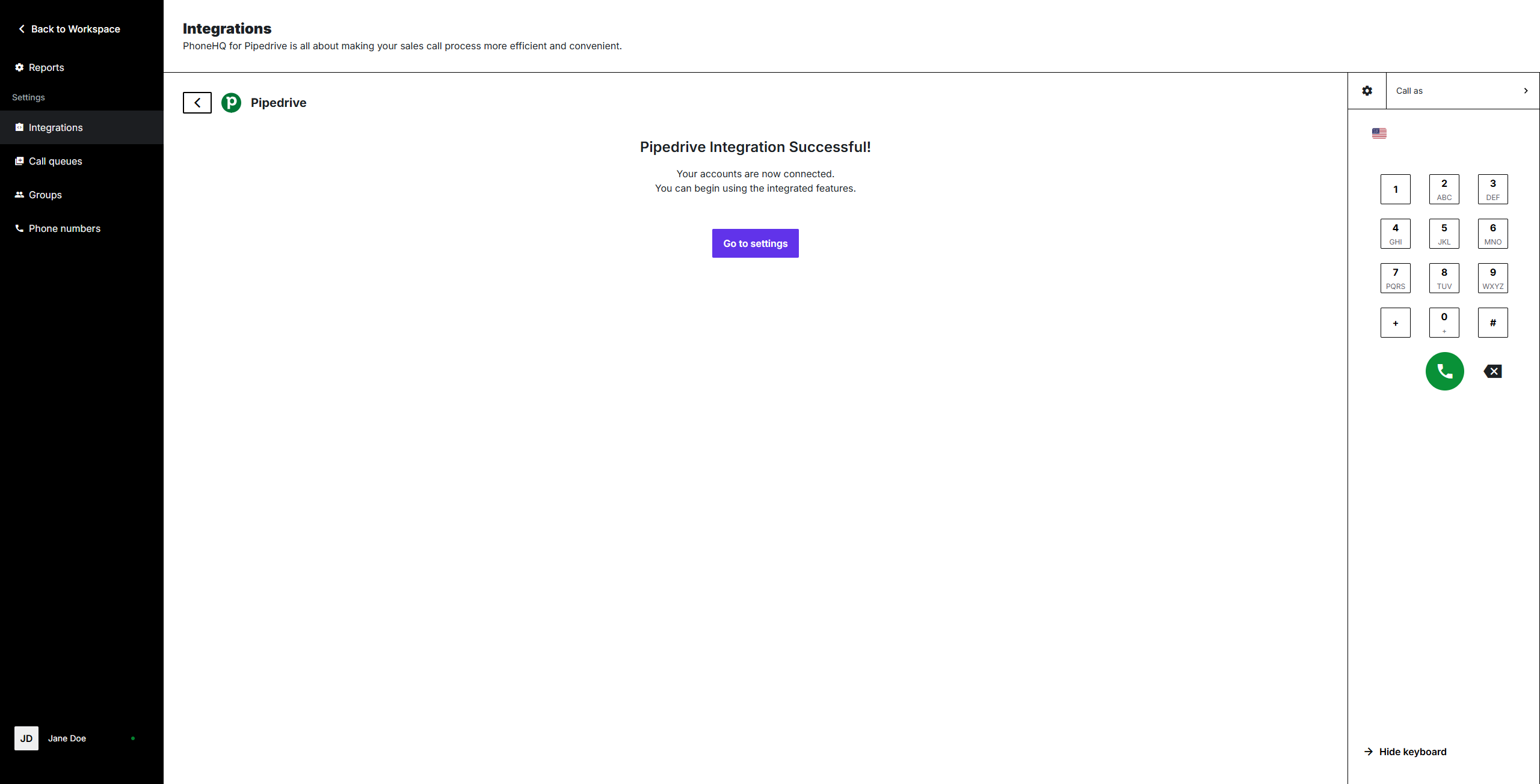 On the Pipedrive Integration settings screen, there are the following options available: