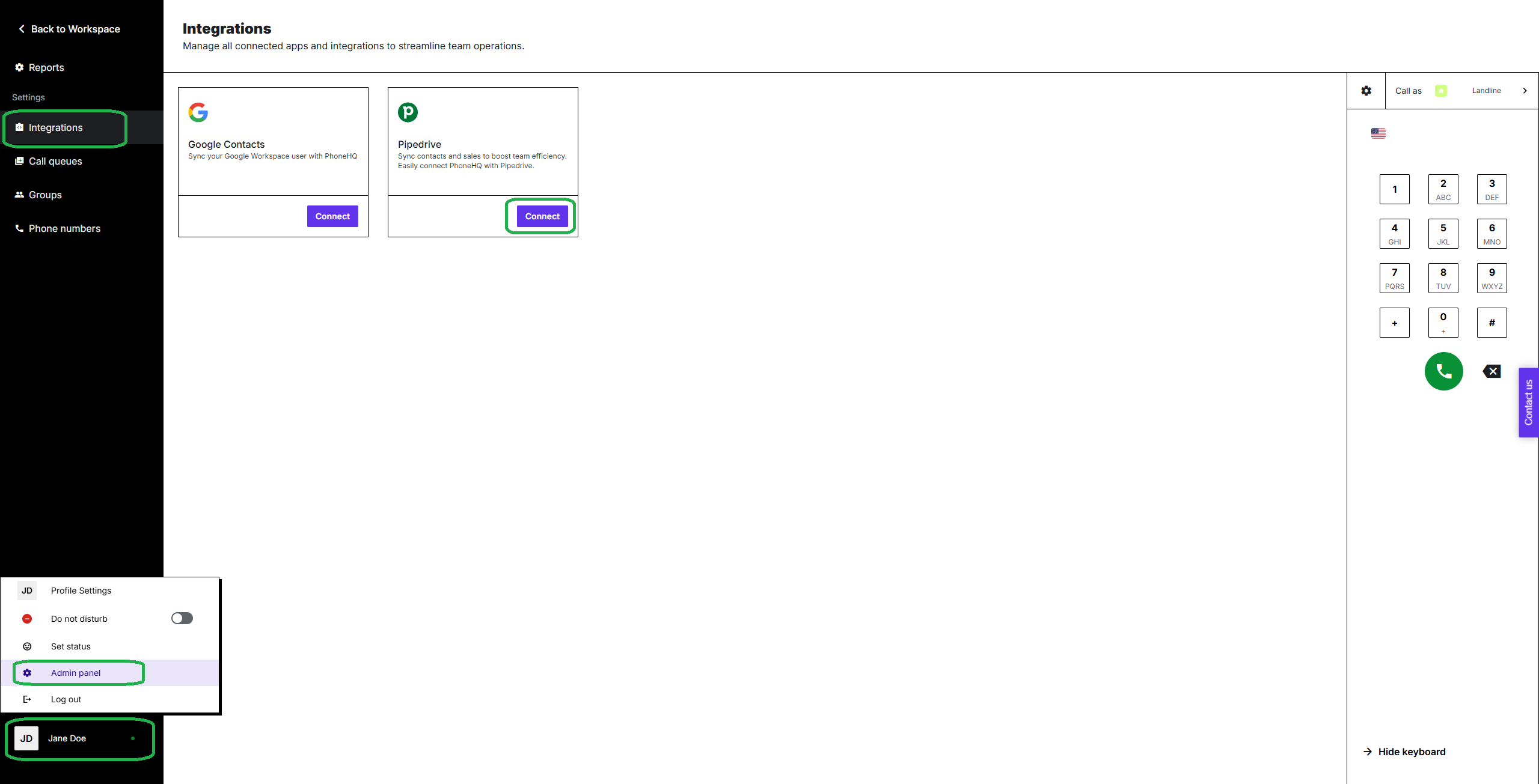 Admin permissions for both services (Check PhoneHQ Admin articles).