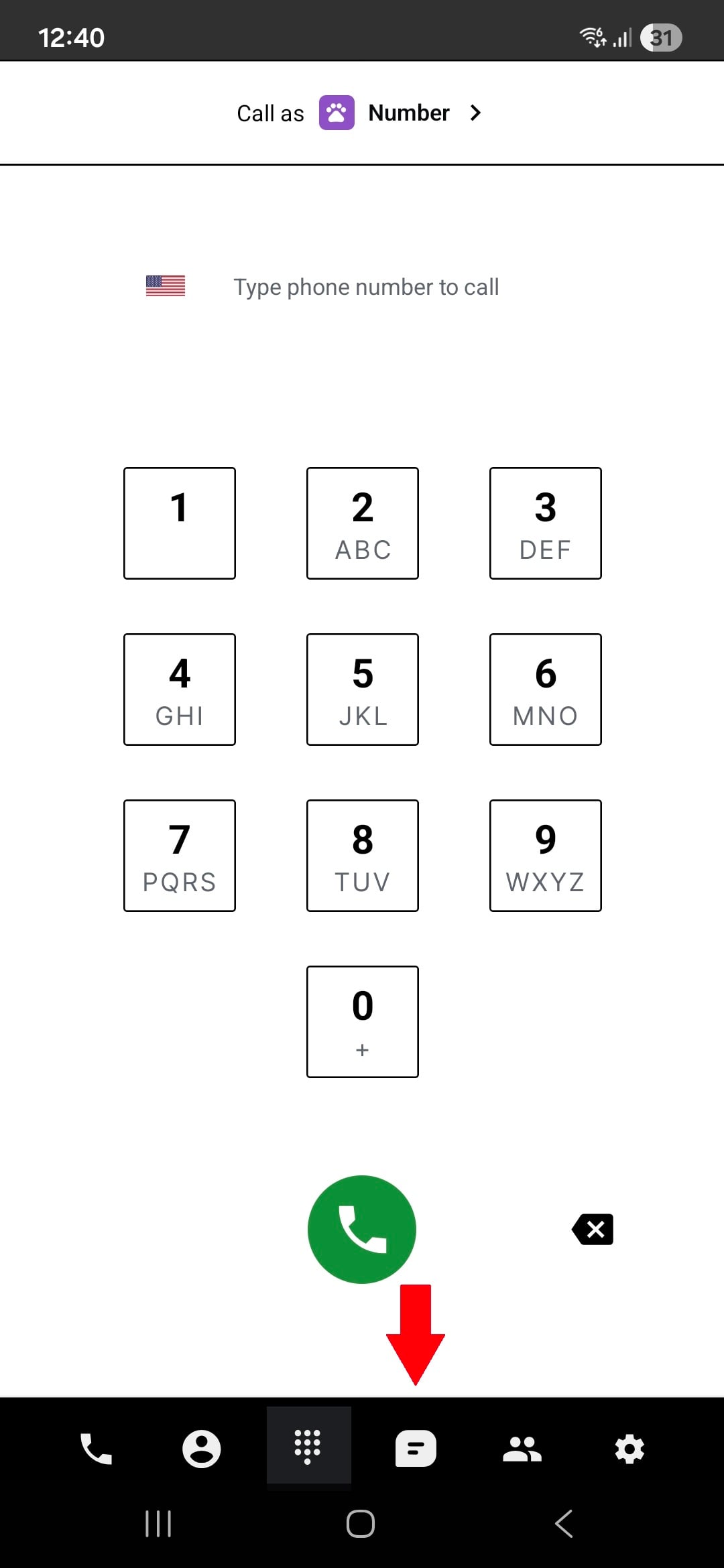 To create a new conversation, go to the chat section and click on the pen icon at the top of the screen.