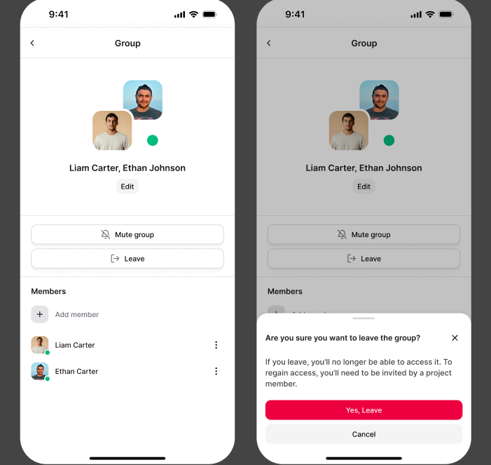 You can mute notifications from a group or leave the group chat entirely. To do this, tap the info icon and select your desired option; to unmute later, return to the same menu and choose “Unmute.” When leaving a group, the system will ask you to confirm your decision.