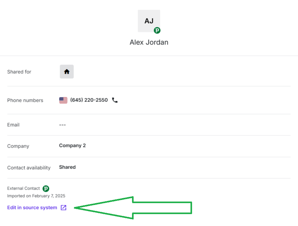 Since the contact synchronization is one-way, PhoneHQ will automatically update the contact with any changes made in Pipedrive. Each contact in PhoneHQ includes a link to Pipedrive, allowing you to quickly navigate to the contact’s details for editing.