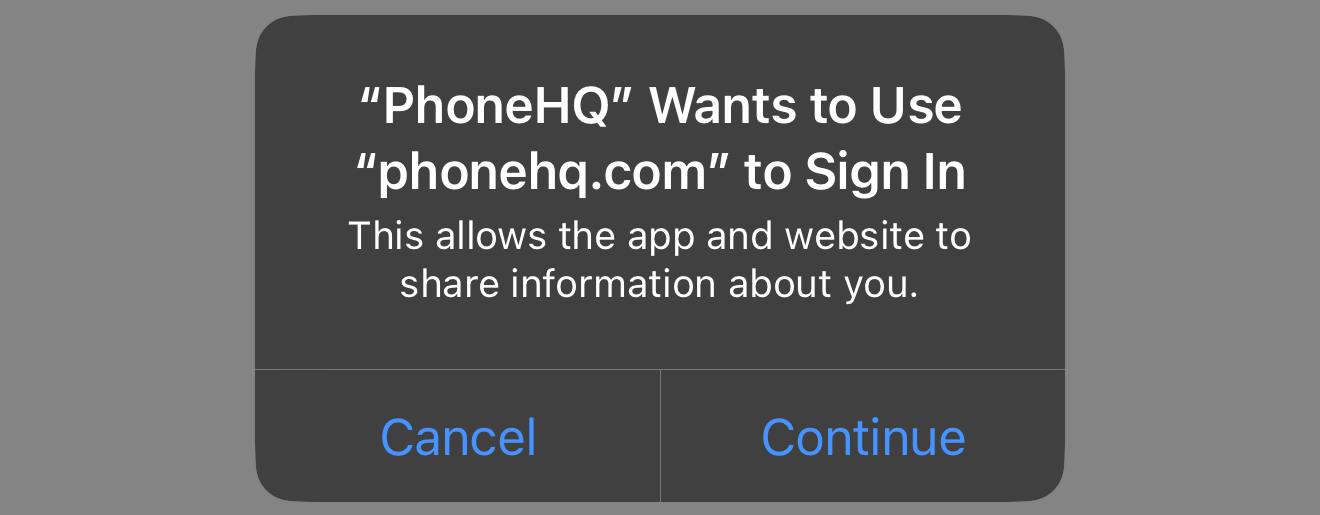 “PhoneHQ” wants to use “phonehq.com” to Sign in.