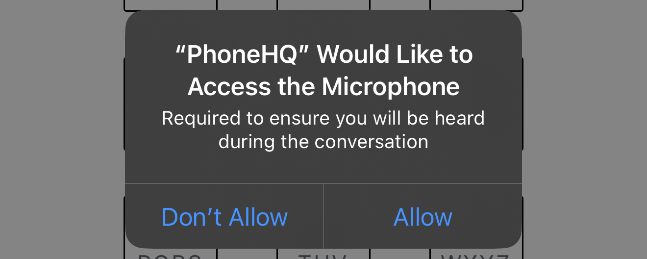 “PhoneHQ” would like to access the microphone”.