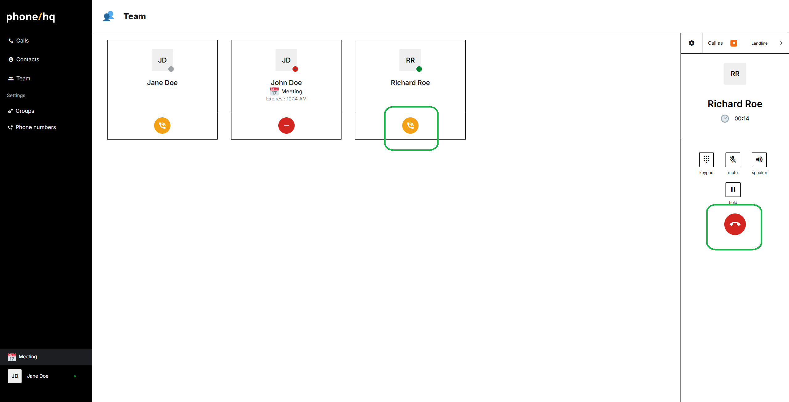 When your conversation is complete, you can end the call by clicking the red phone icon on the dialer panel.