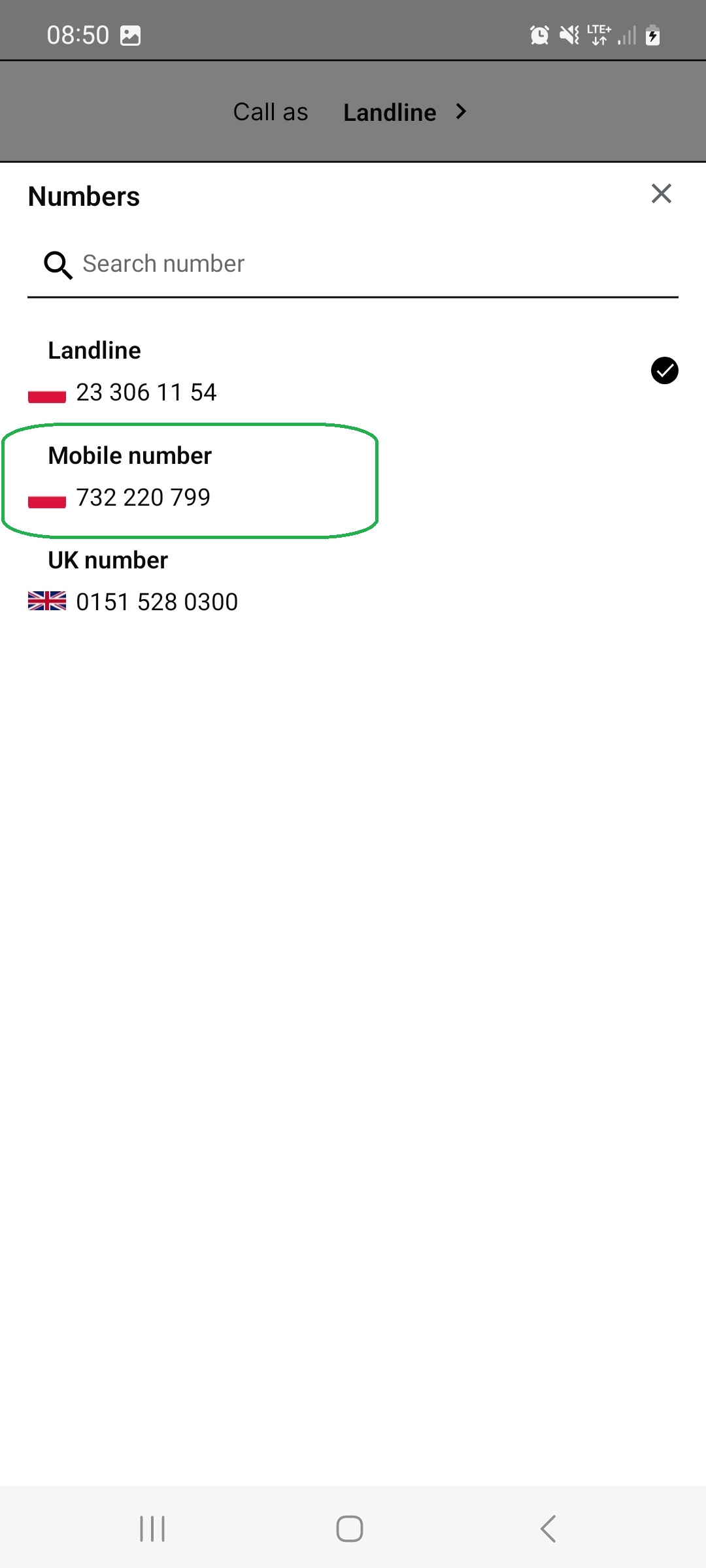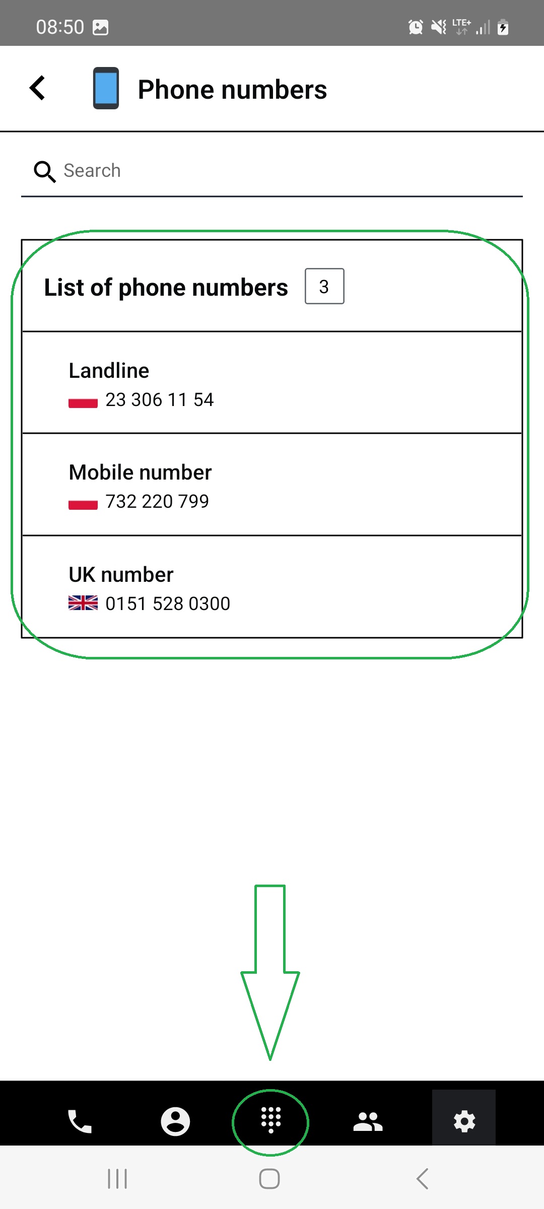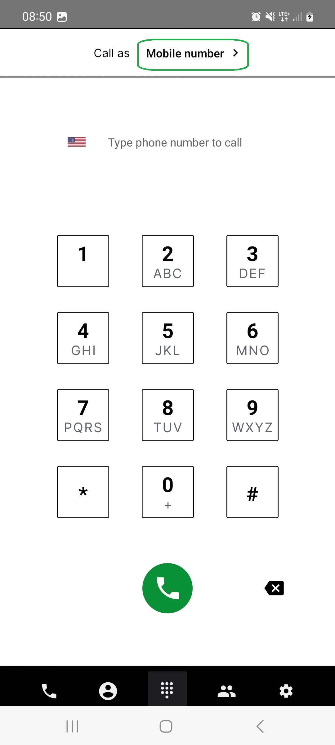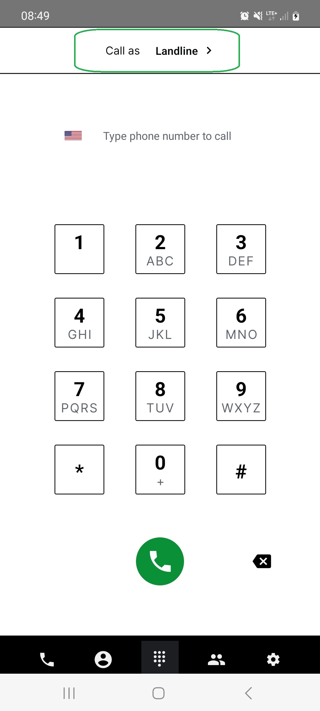 If the dialer panel is not visible, tap the middle icon on the bottom menu.