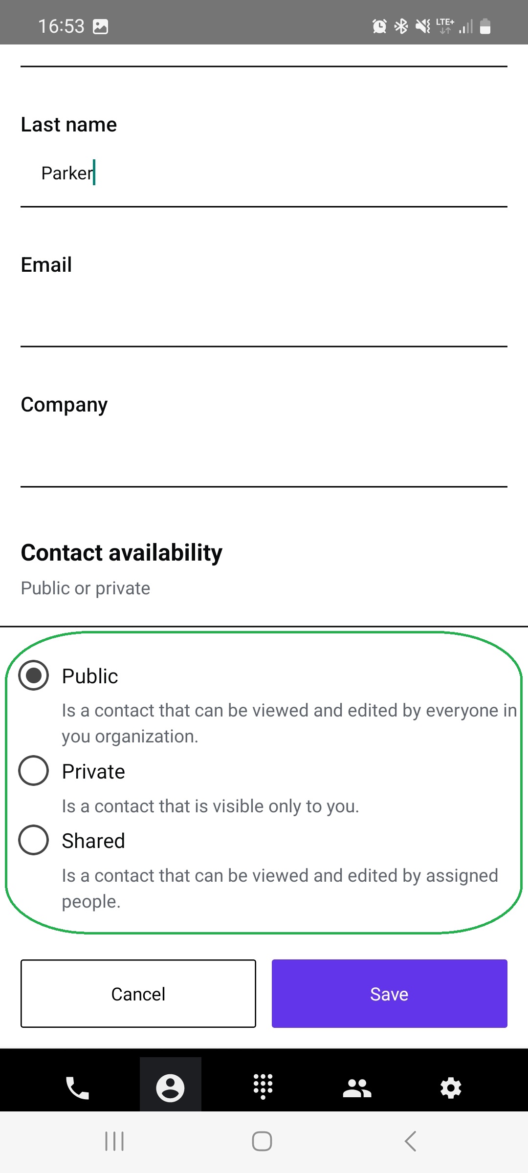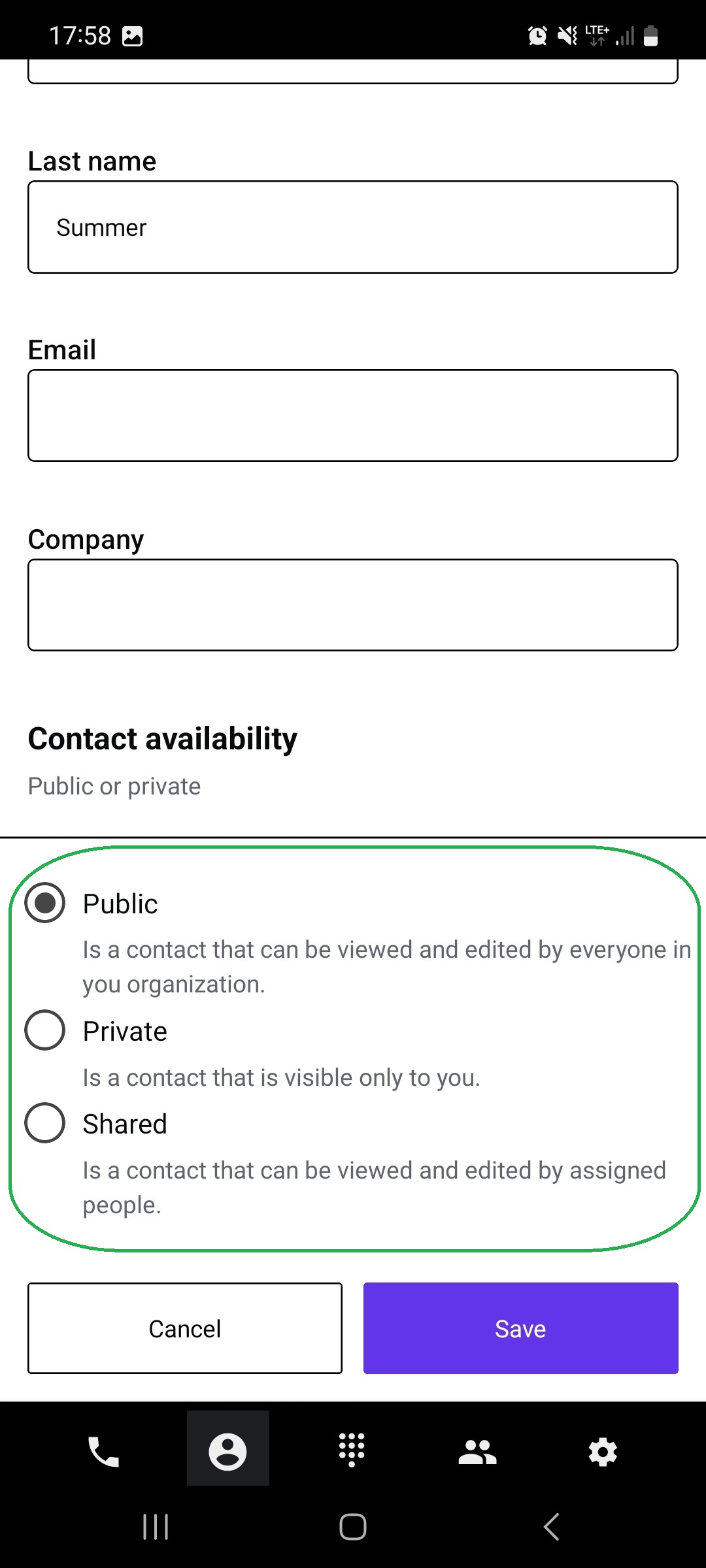 Go to the “Contacts” section - second button from the left on the bottom menu bar.