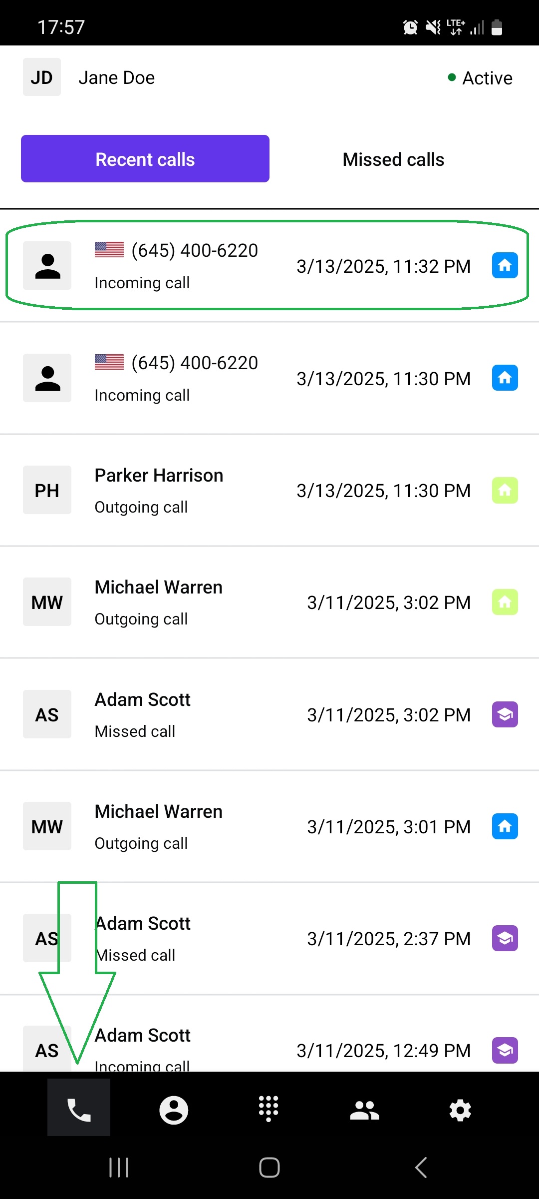 Go to the “Calls” section - first from the left on the bottom bar menu.
