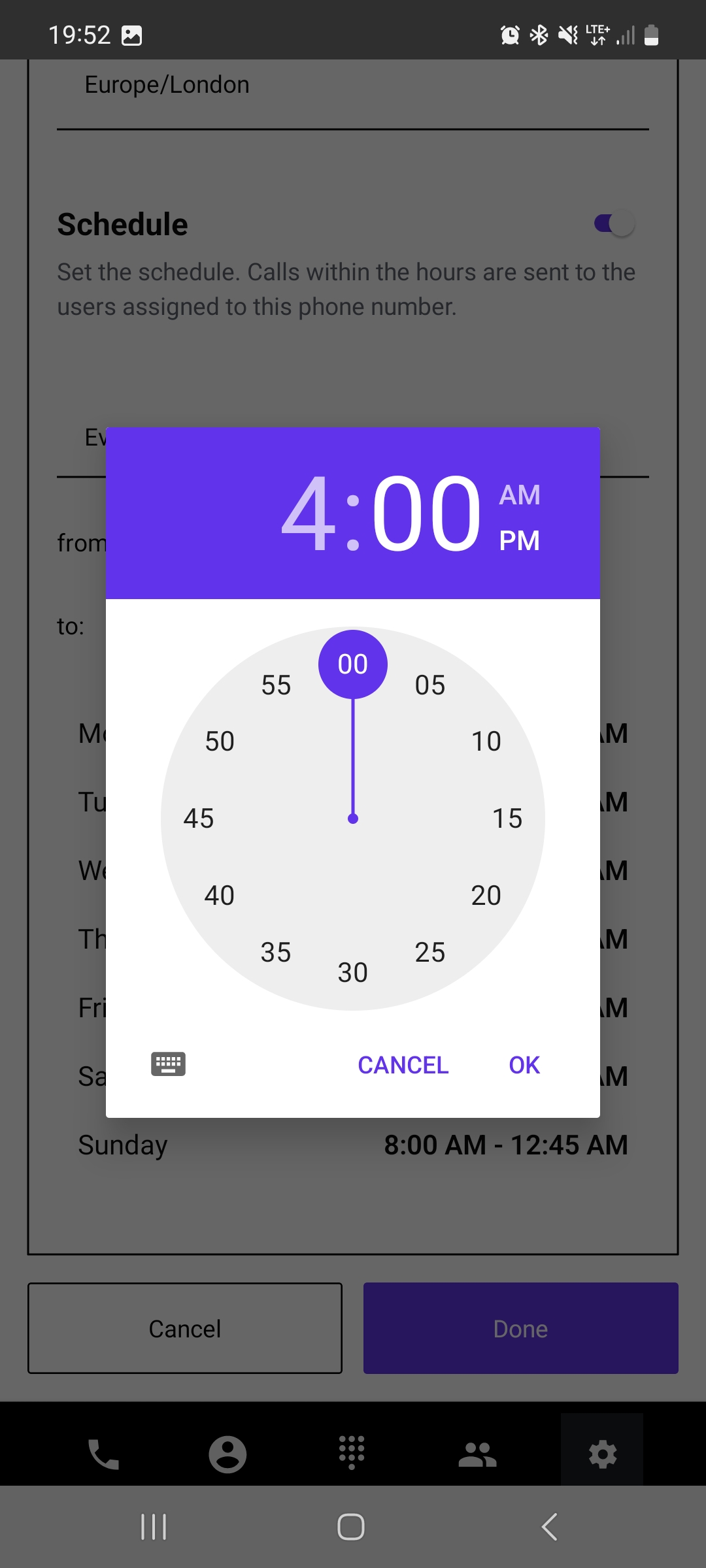 Based on your choice, configure the appropriate working hours. After setting the correct time, tap "OK" to confirm.