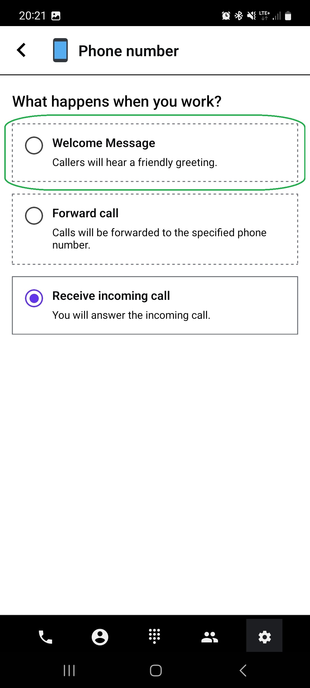Tap on the number you want to set up a welcome message for.