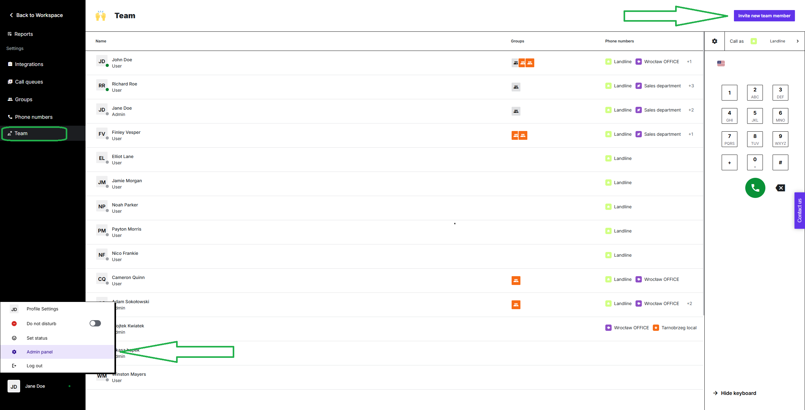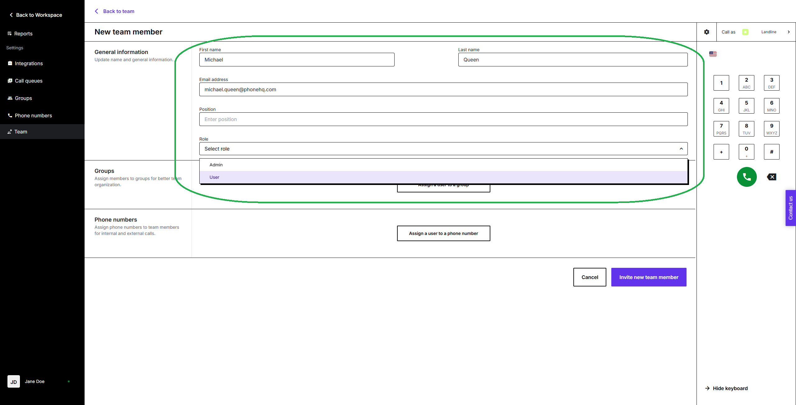 To add a new Team member to your company’s PhoneHQ account, you need Admin permissions.