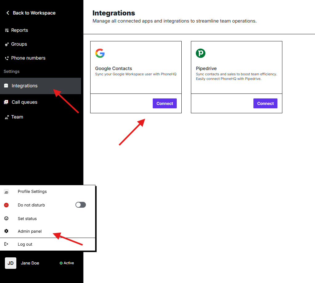 Admin permissions for both services (Check PhoneHQ Admin articles).