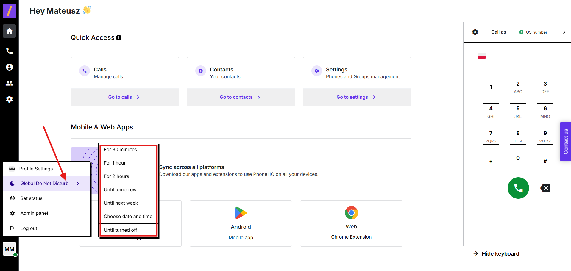 It’s possible that you may receive an incoming call even when the Do Not Disturb option is enabled. This can happen if one of your Team members initiates an internal call.
