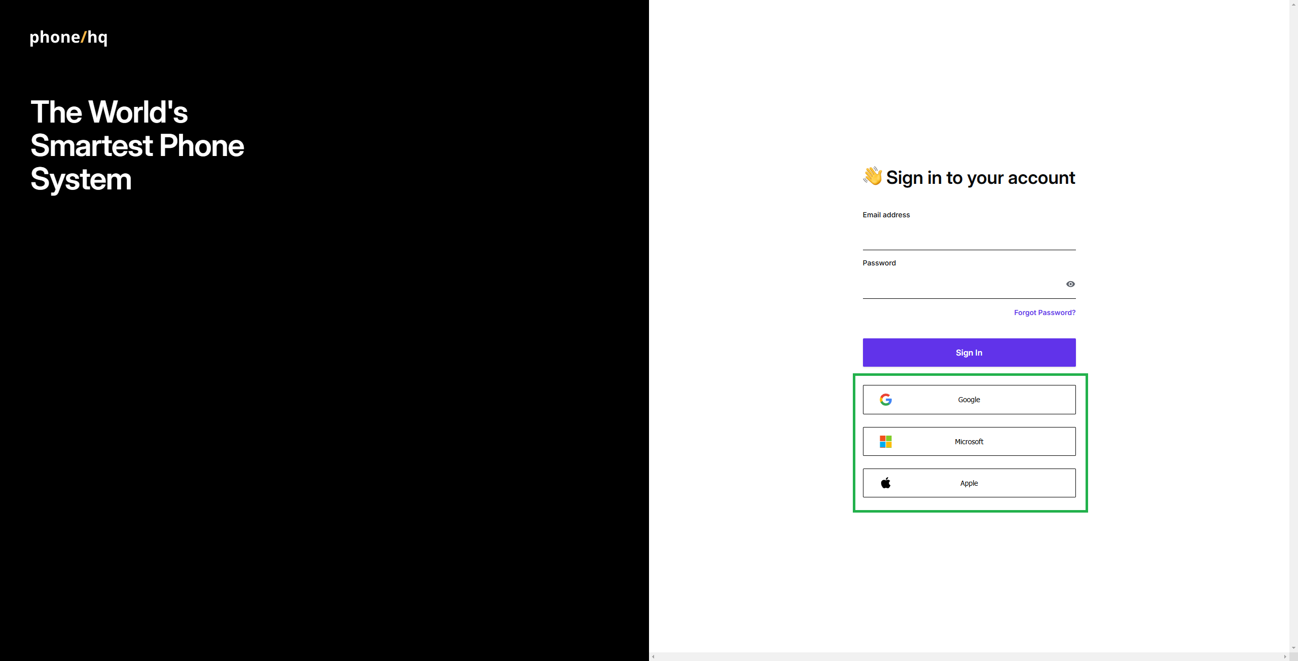 Ensure your PhoneHQ profile is connected to the SSO account you wish to use.