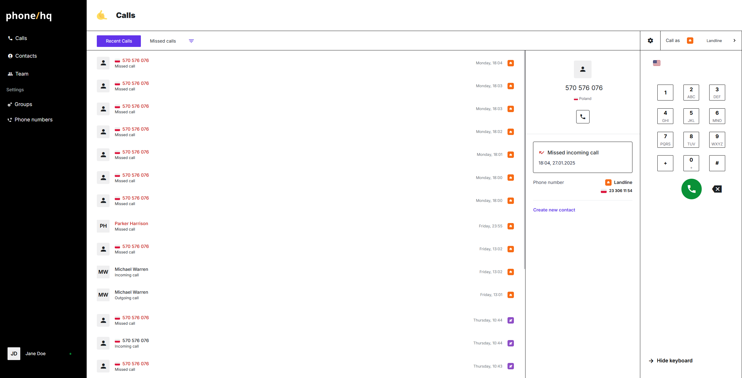 Web App screen | The main interface of the PhoneHQ platform you see after logging in. |