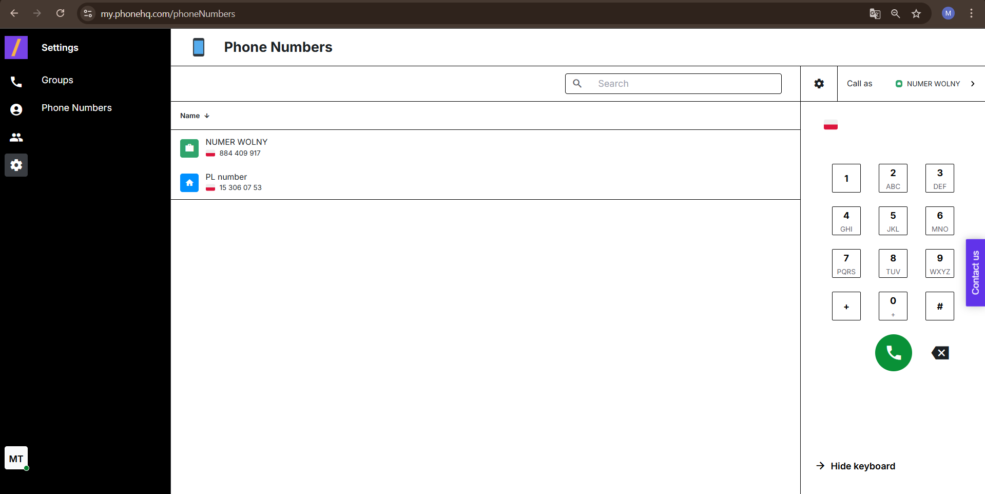 Settings: Selecting this option brings you to the Settings section, where you can adjust preferences for shared numbers or view group details.