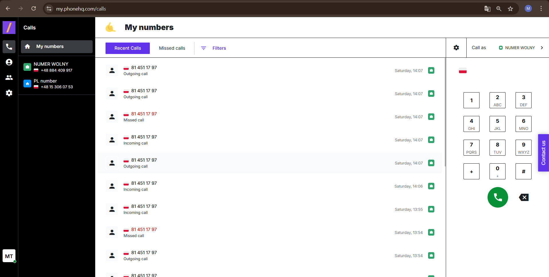 On the Welcome Page, click "Calls" to go to the tab with your call history.
