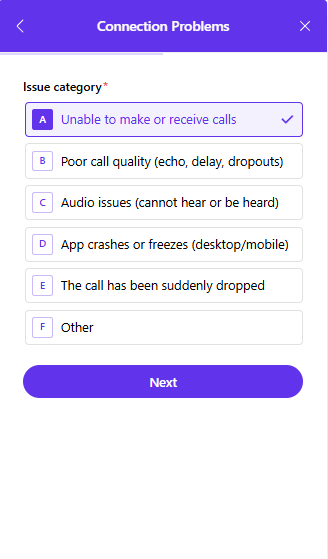 If you experience call-related issues, you can send an in-app problem report in just a few taps. The flow, screenshots, and button labels have been refreshed in the latest release — follow the steps below.
