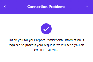 Additionally, you can report any connection issue to the support team, who will analyze it and respond as quickly as possible.