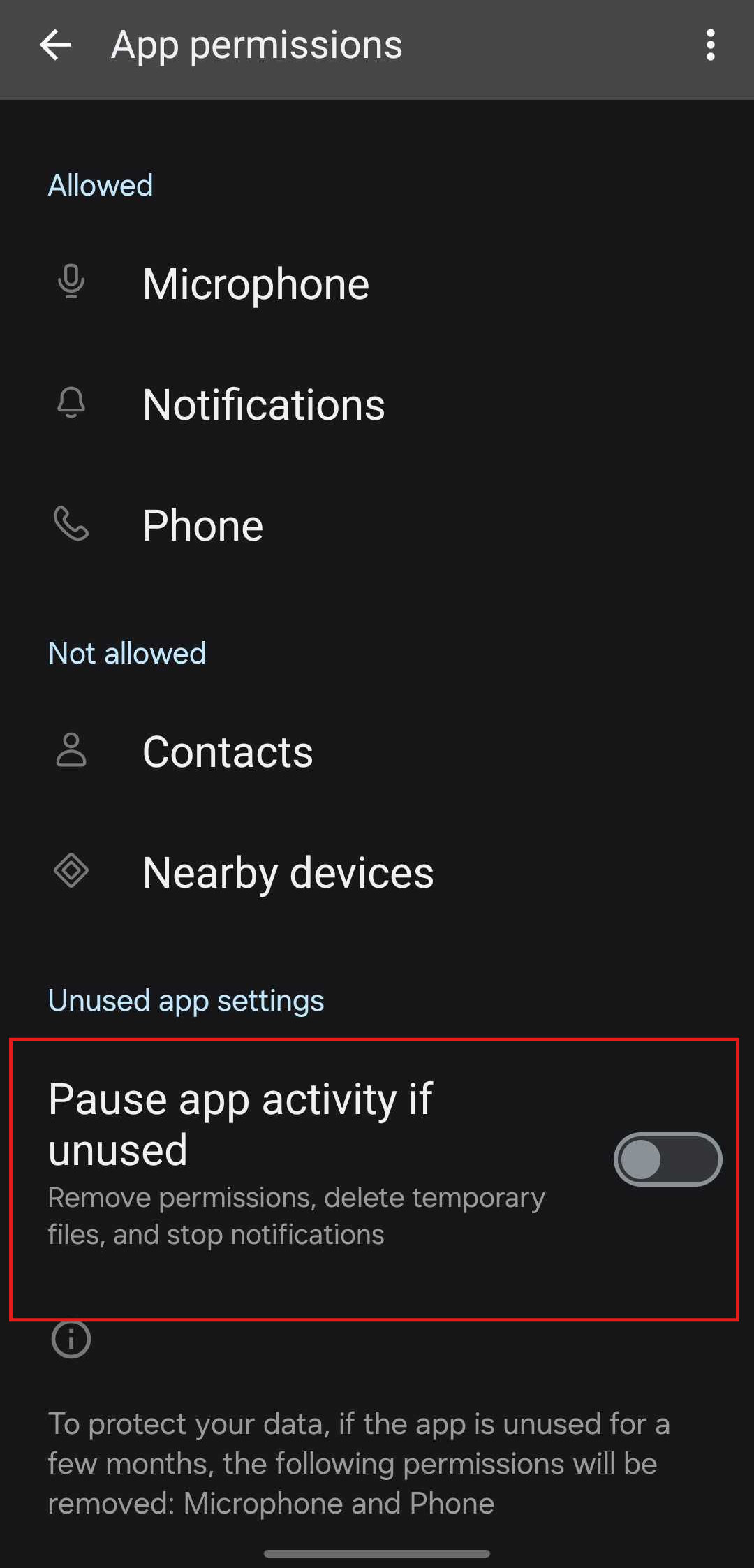 Solution: Go to: Settings > App management > PhoneHQ > Permissions and activate the “Manual permission management” option and disable any power restrictions.