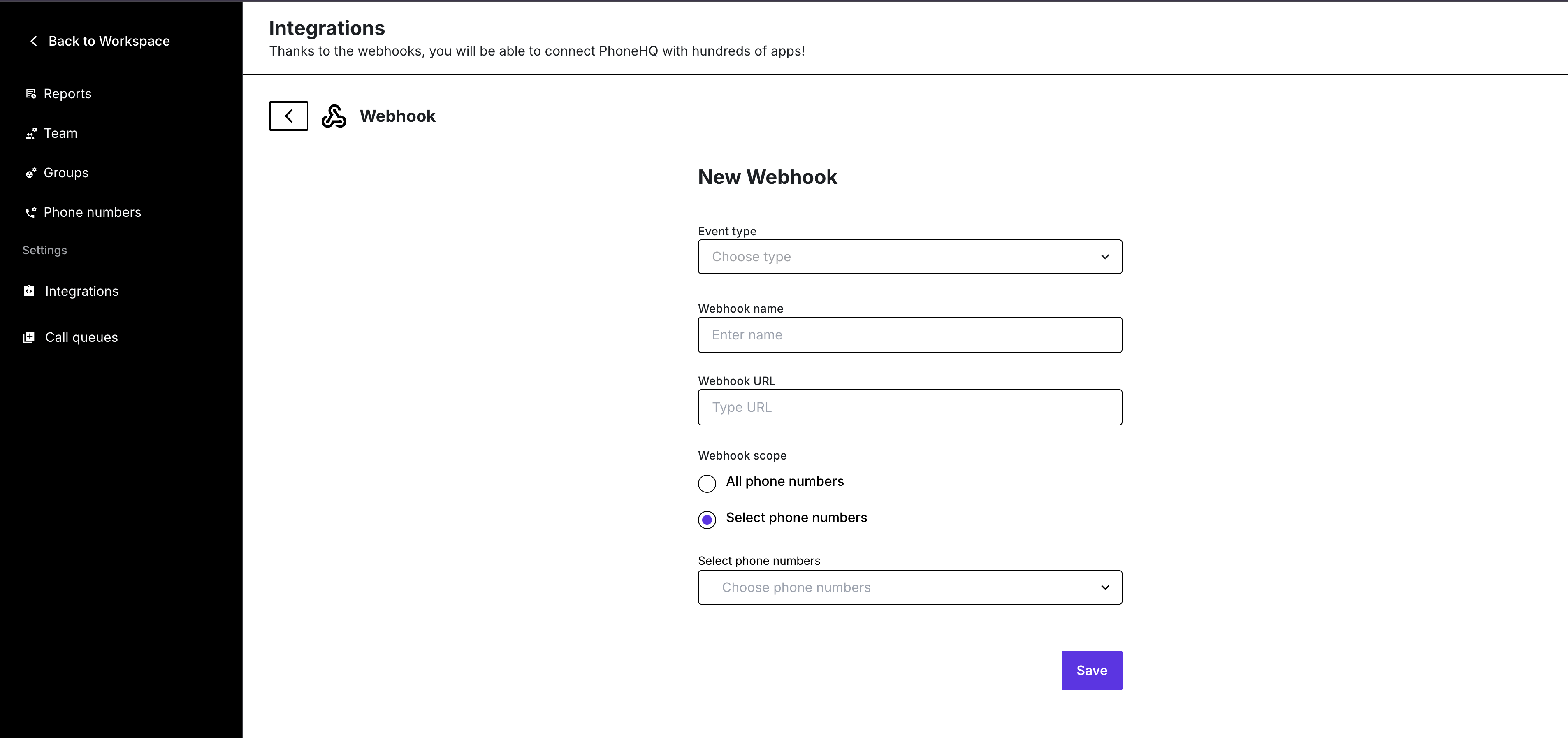 Done! Your webhook is now integrated with PhoneHQ and will process the selected events according to the provided URL.