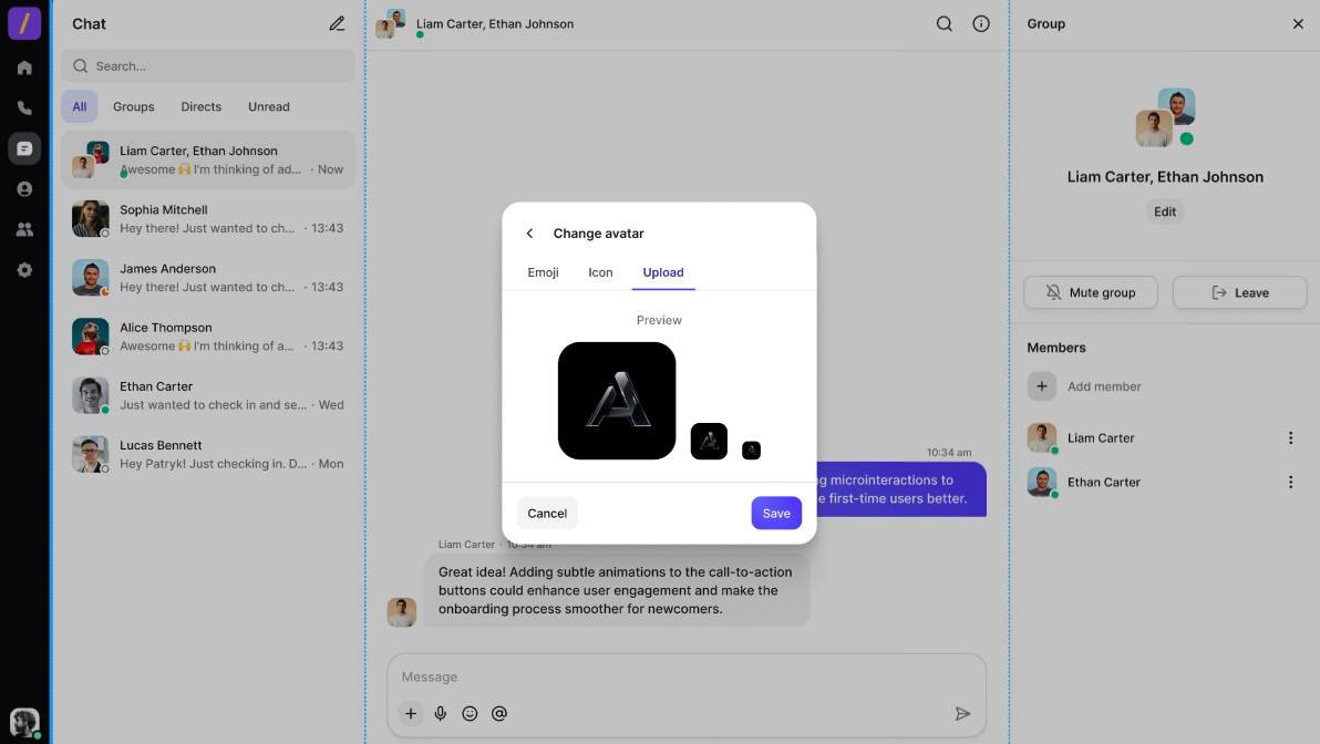 You can personalise the group avatar by choosing an emoji or uploading a photo.